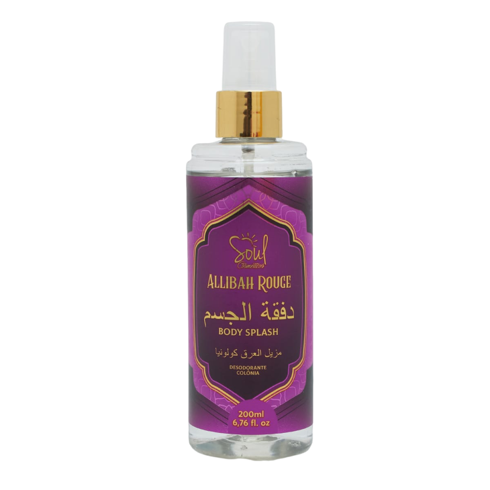 Descubra o equilíbrio perfeito entre elegância, frescor e feminilidade com o Body Splash Allibah Rouge Soul Cosméticos.